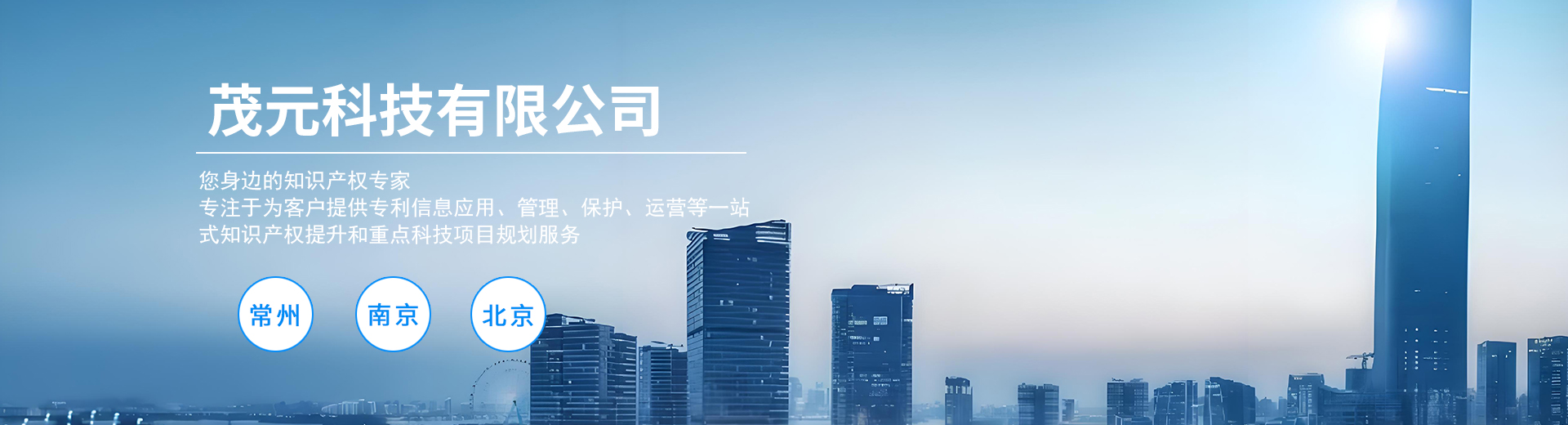 茂元科技是一家致力于提供高效、全面、专业的综合性的创新服务公司。公司立足江苏、面向全国,在常州、南京、徐州、上海、北京等多地均设有服务团队,是国内领先的知识产权咨询机构。我们以知识产权、科技服务以及企业形象提升为核心业务,致力于为客户提供一站式、高效、专业的服务解决方案。茂元科技专注于为客户提供专利信息应用、管理、保护、运营等一站式知识产权提升和重点科技项目规划服务。业务范围涵盖:企业信息分析、fto报告、核心技术专利导航分析布局、专利无效诉讼服务,重点知识产权项目与科技项目全流程发展规划。